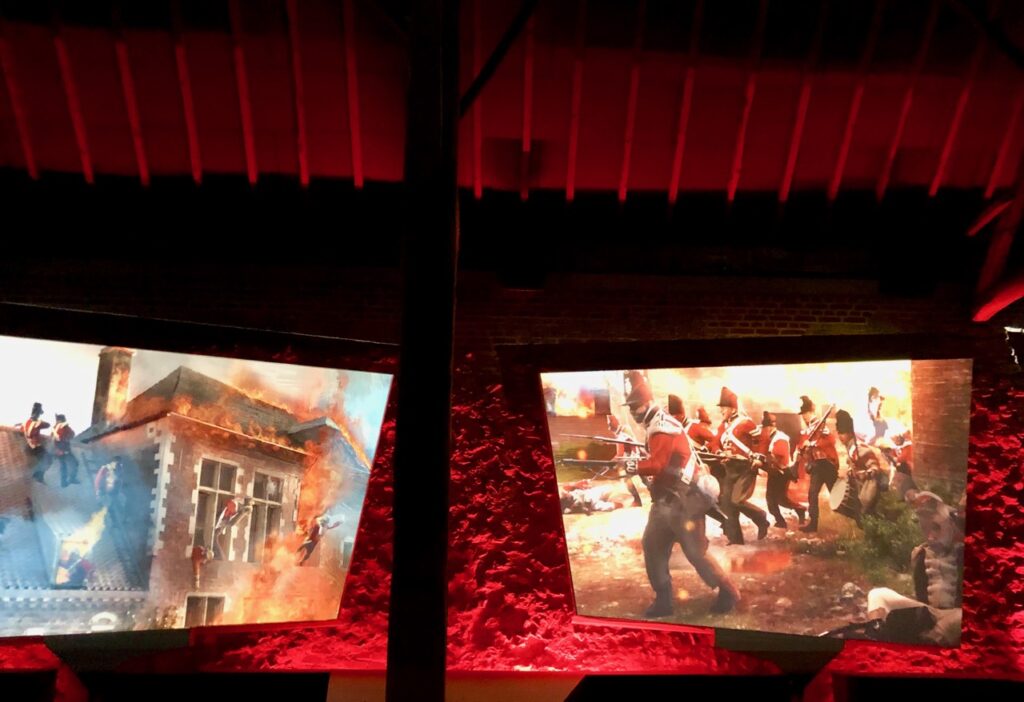 Arrivés à la ferme d’Hougoumont, lieu des combats les plus meurtriers, comment raconter la bataille de Waterloo à nos deux petits soldats, toujours sages comme des images ? Heureusement, le spectacle multimedia proposé dans la vieille (et très belle) grange l’a fait pour nous. Avec pas mal d’effets spéciaux sur trois écrans et très très peu de sang. Ouf. Ils ont pensé aux enfants.