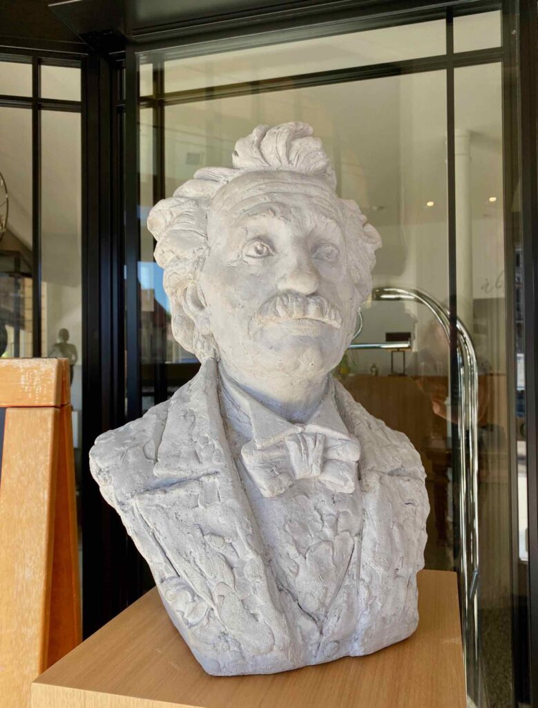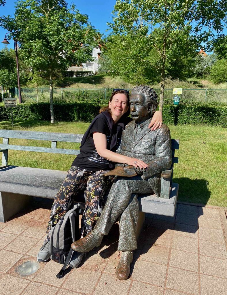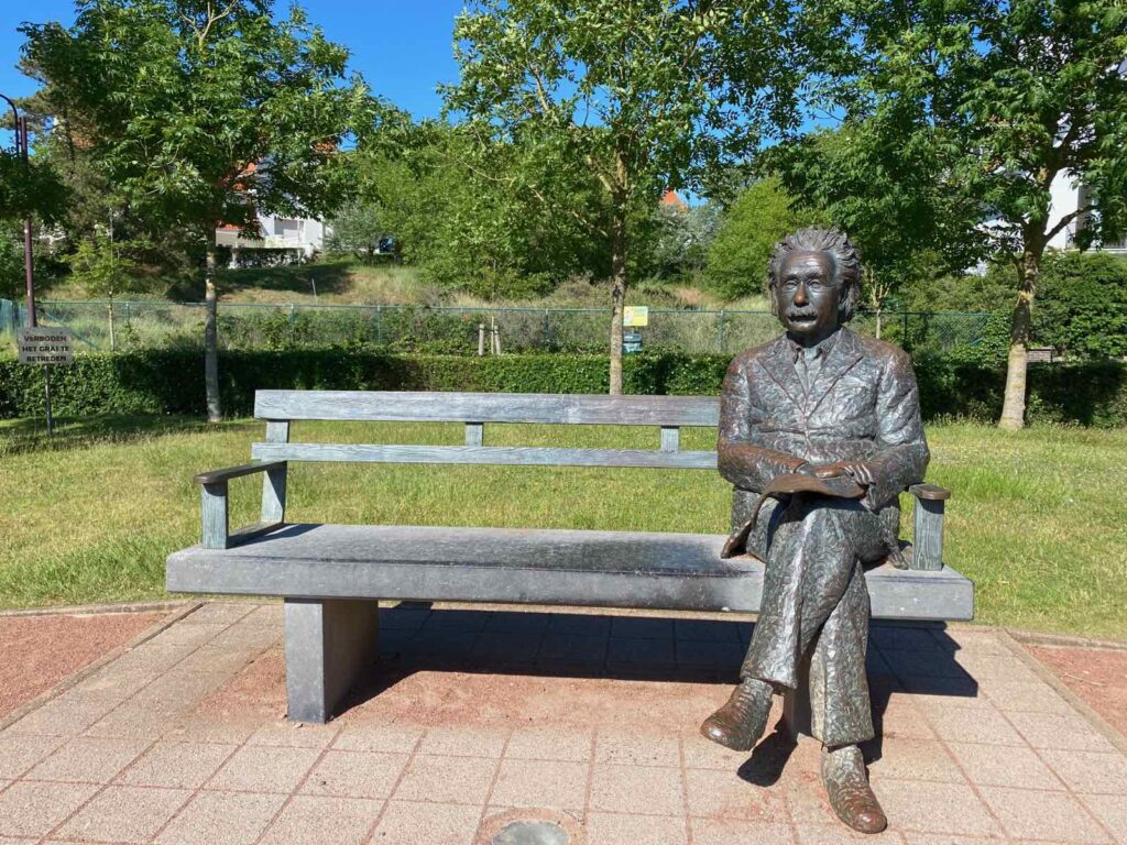 Si vous voulez mettre vos pas dans ceux d’Einstein, il y a un autre endroit à ne pas manquer à De Haan. C’est le petit square au bout de Normandiëlaan, où trône une statue en bronze signée Johnny Werbrouck. Elle aussi rappelle le séjour du prix Nobel de physique dans la station.