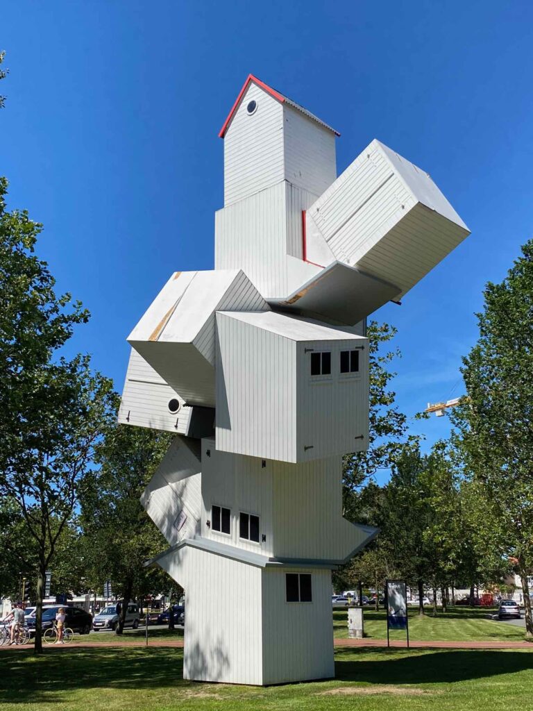 Quelques pas à peine et voici Beach Castle, une sorte de totem imaginé par Jean-François Fourtou pour le festival Beaufort 2018.