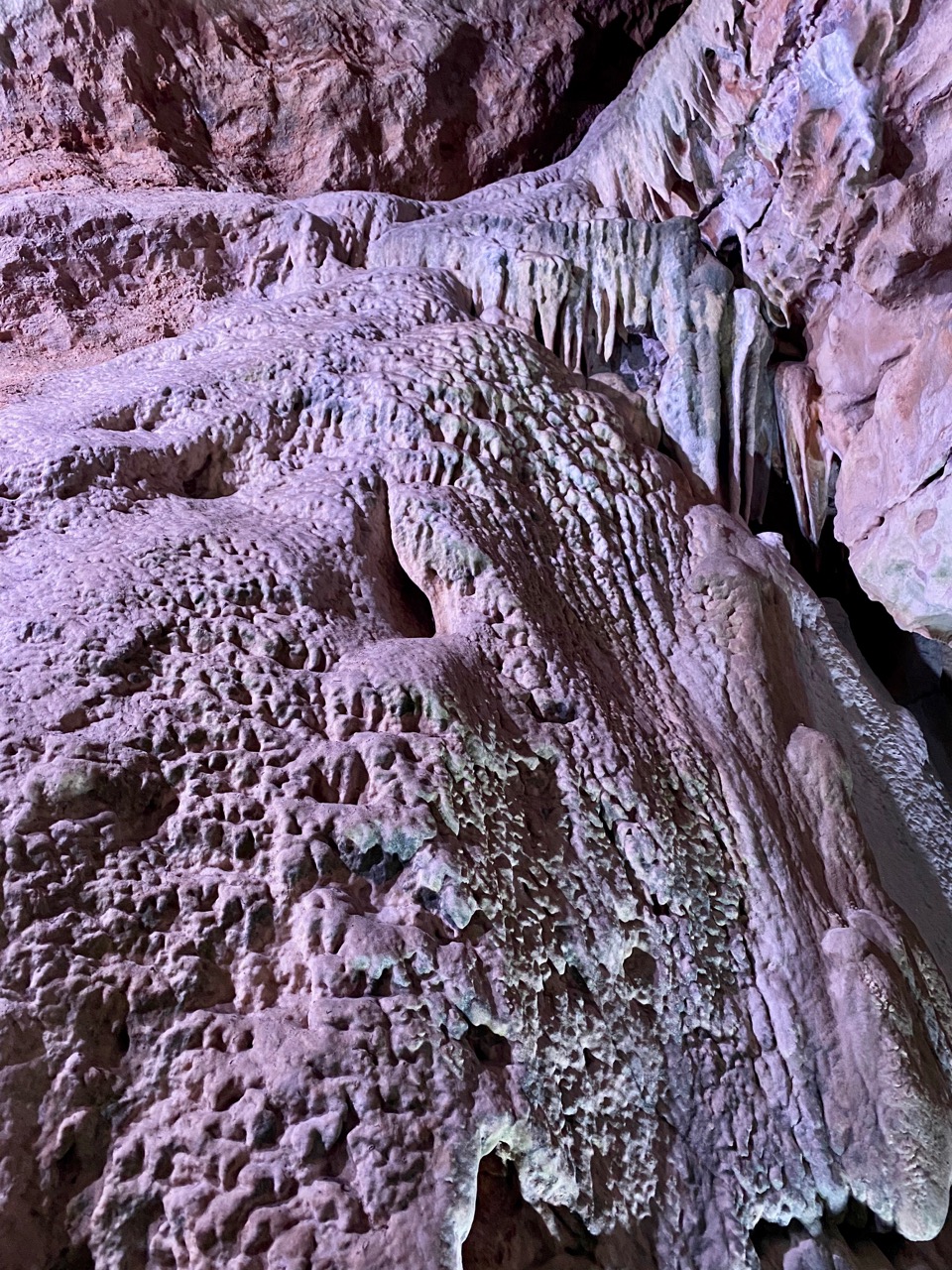 Aidé par la guide, on peut aussi y voir les fossiles de divers animaux, de coraux ou d’éponges gravés dans la roche. Mais heureusement, pas de nouvelles des chauve-souris, qui viennent hiberner dans les grottes. Car j’ai une peur bleue de ces bestioles, je dois bien l’avouer…