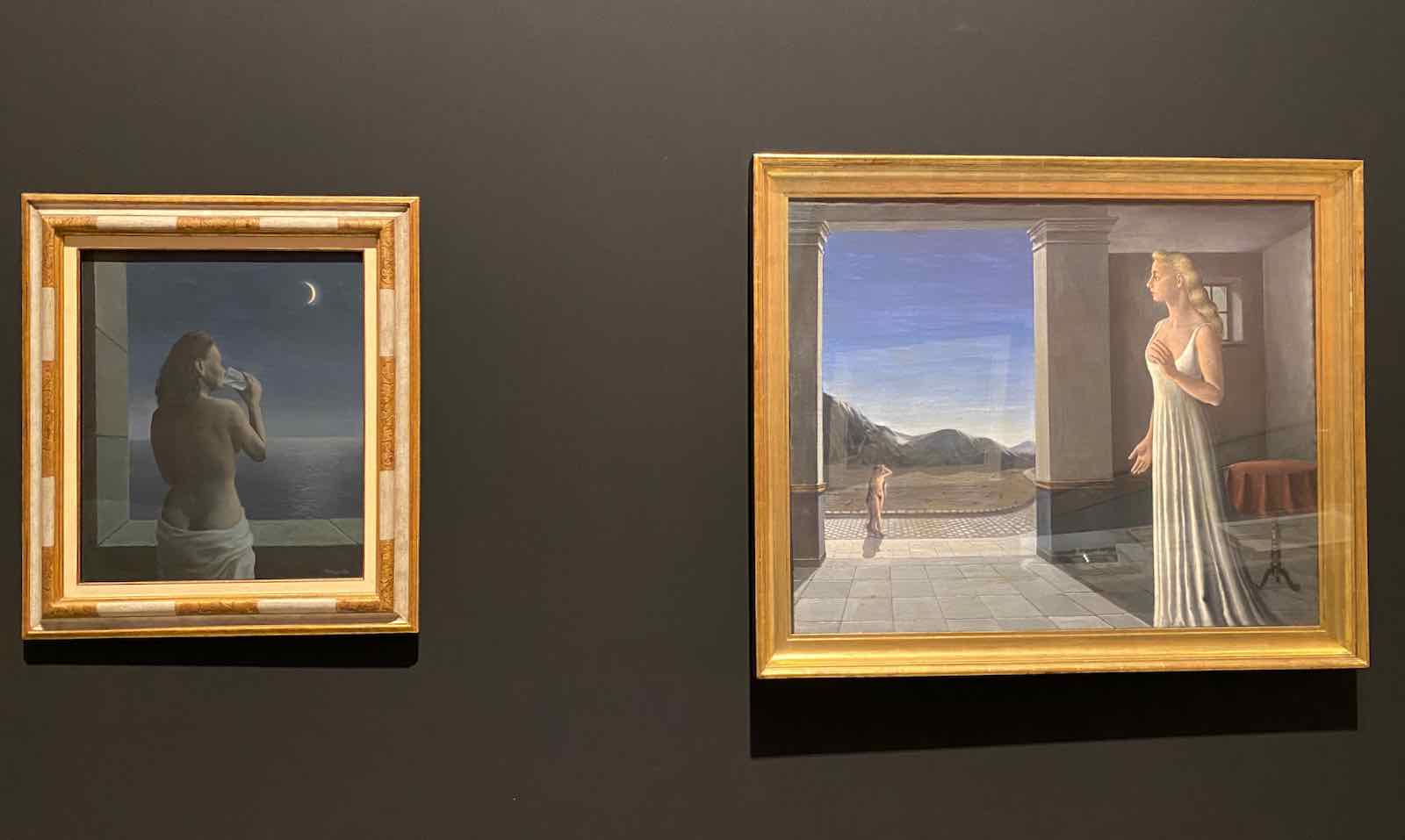 René Magritte, Les Profondeurs du plaisir, 1947, collection particulière et Paul Delvaux, L’Aube, 1943, collection particulière