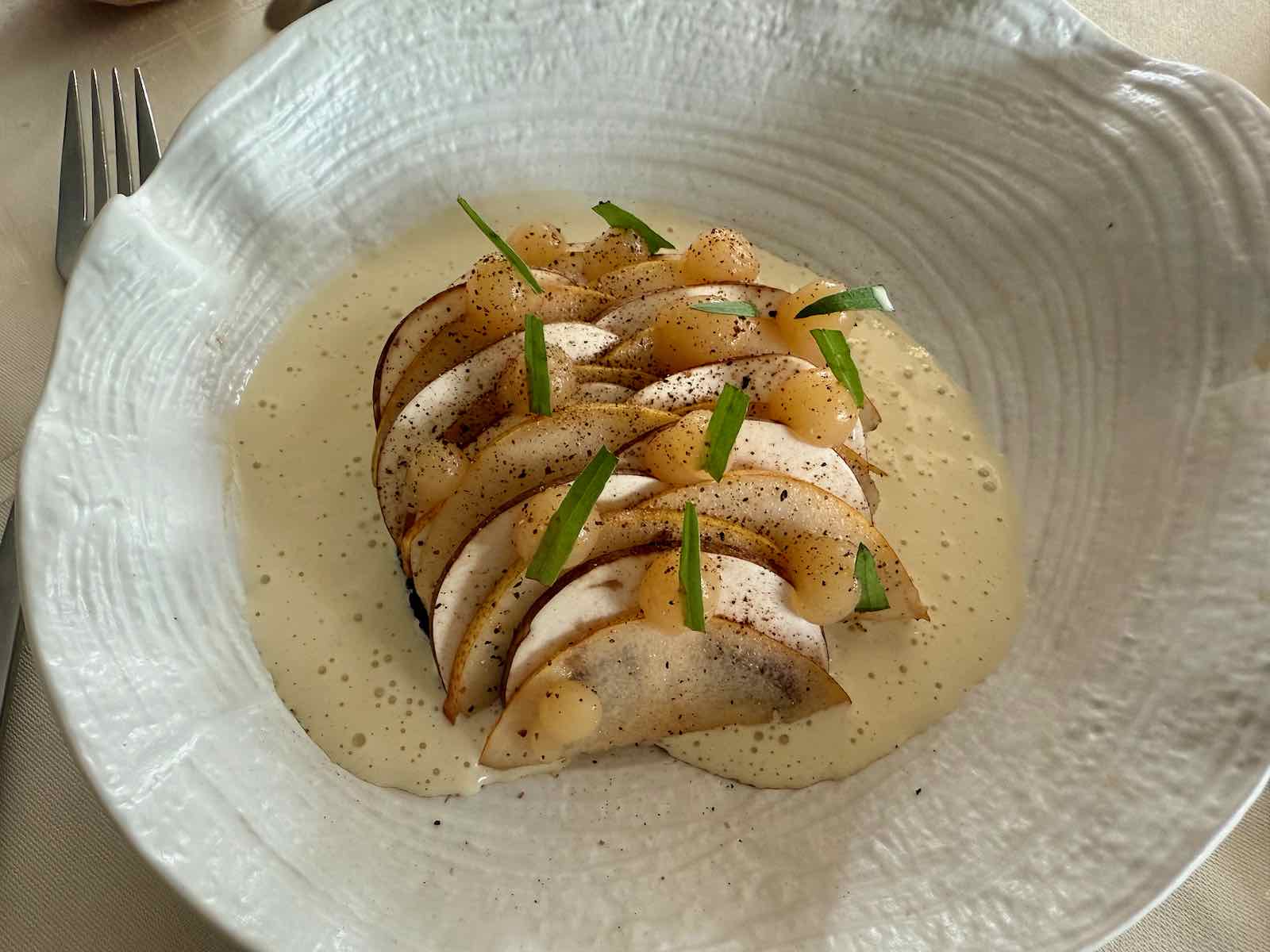 Relais-de-Vincey-champignons-en-textures-poire-roquefort