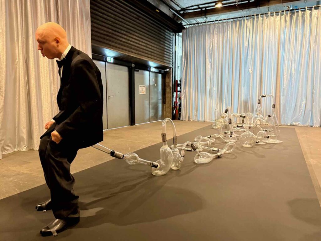 Vous en avez déjà vu, vous, un orgue à pets ? Si la réponse est non, lille3000 vous donne rendez-vous à la Gare Saint-Sauveur pour découvrir cet étrange instrument, sortant du postérieur d’un humain (un musicien ?). Il se déroule sur plusieurs mètres, tel un intestin de verre, flanqué de fioles en forme d’estomacs.