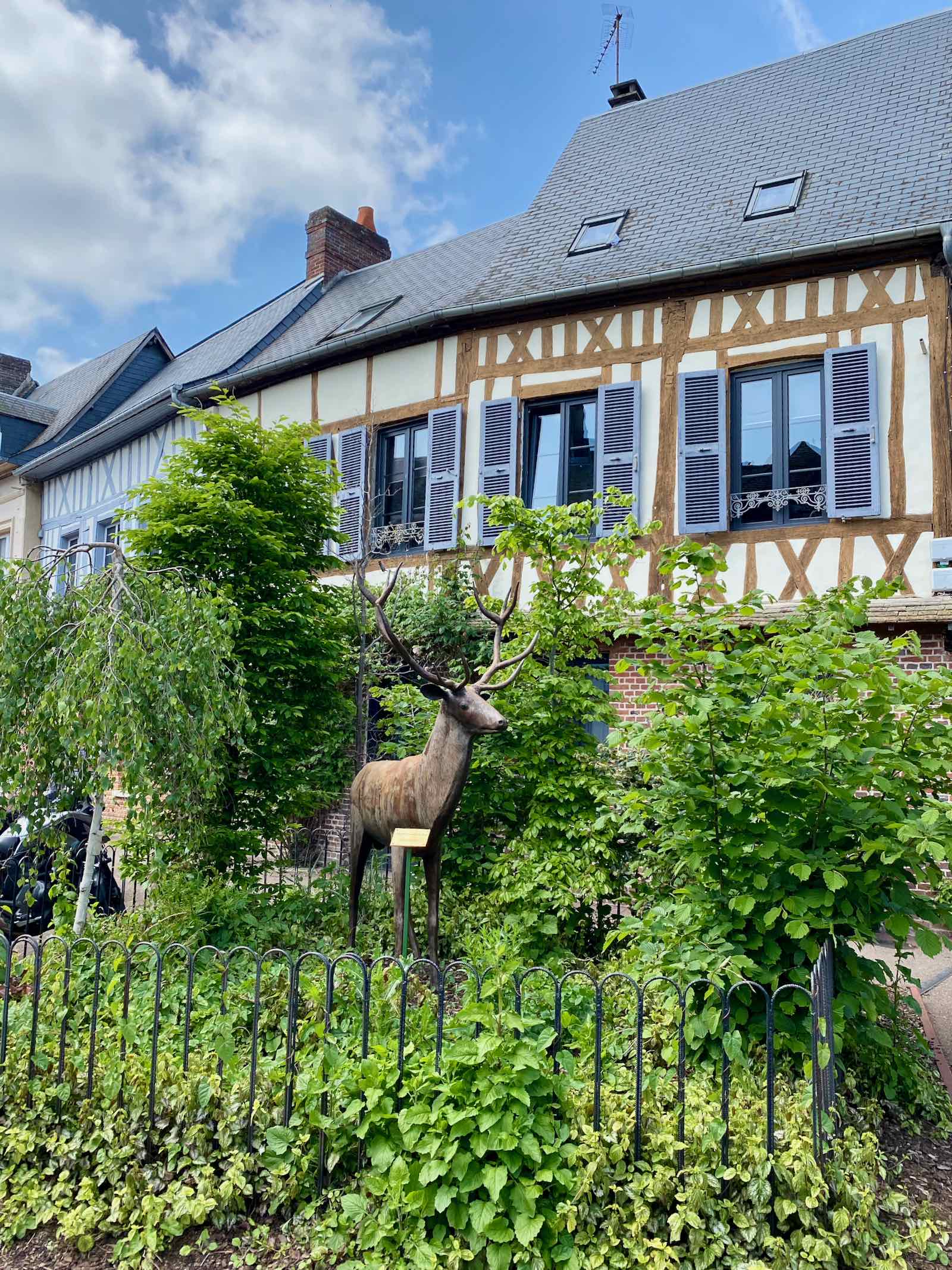 Lyons-la-Foret-place-Isaac-Benserade-statue-cerf
