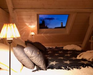 Maison Amodio B&B Bruges Belgique – chambre Knokke vue sur beffroi le soir