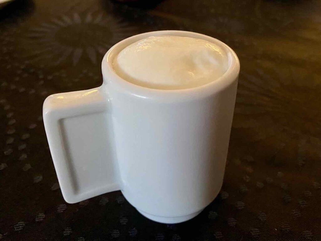 Avant d’attaquer cette formule Midi de la Maison Demarcq à Cambrai, nous avons eu droit, en clientes très chouchoutées, à plusieurs mises en bouche. Un petit roulé, un tacos au magret de canard, une bouchée intitulée « Comme une moule frite » et un doux cappuccino à la crème de potimarron.