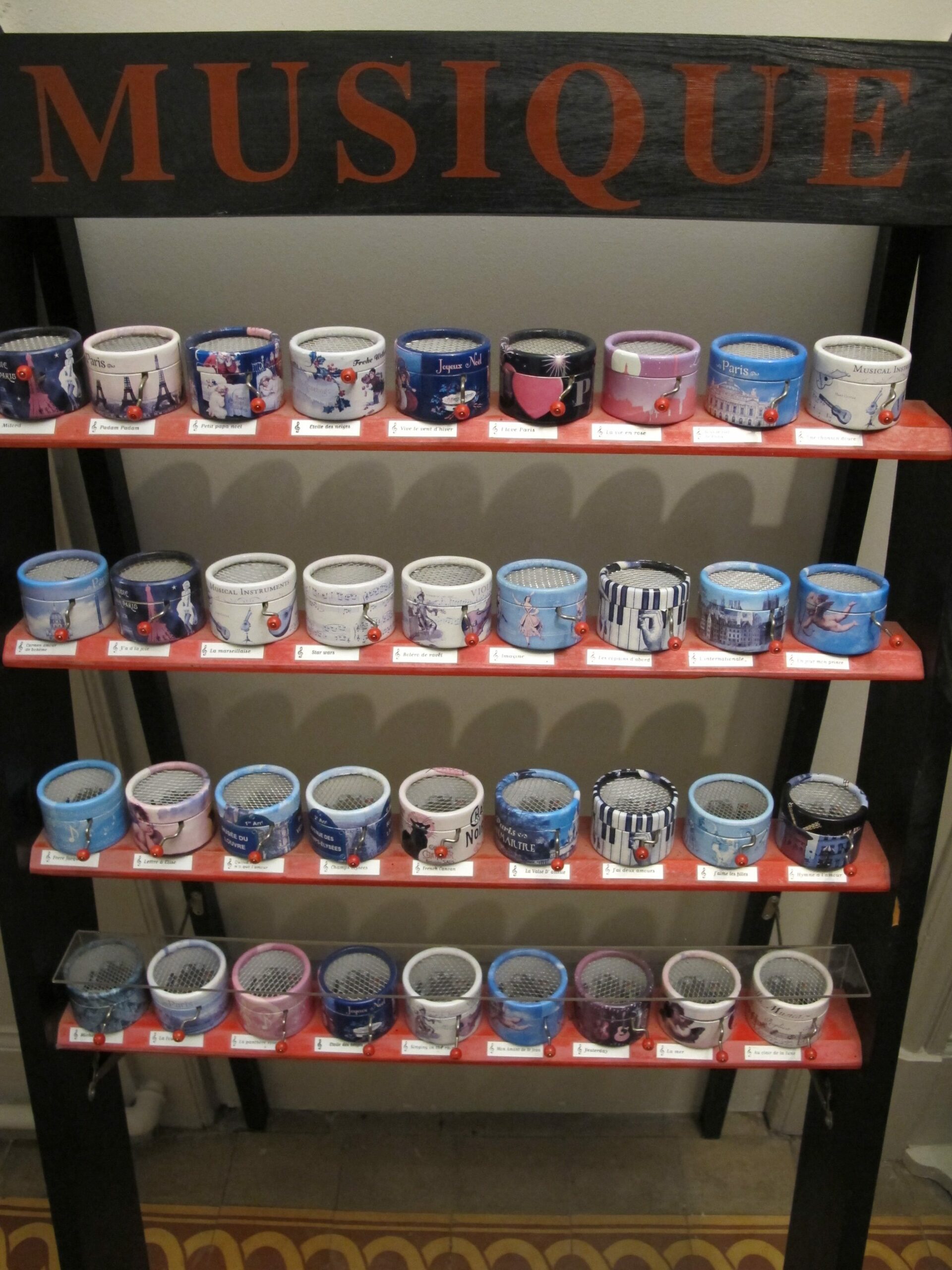 Dans cette entrée menant au vaste jardin, impossible de ne pas s’arrêter devant une étagère couverte de petites boîtes à musique. Chacune distille sa petite mélodie et il y en a pour un moment si on veut toutes les tester ! D’où viennent-elles ? D’une boutique que Stéphane tenait dans une autre vie…