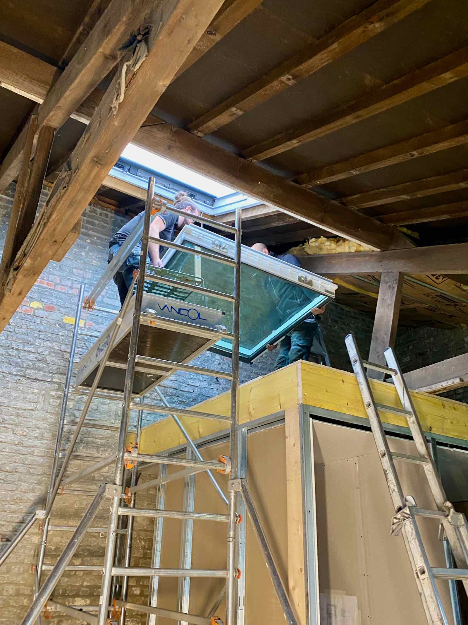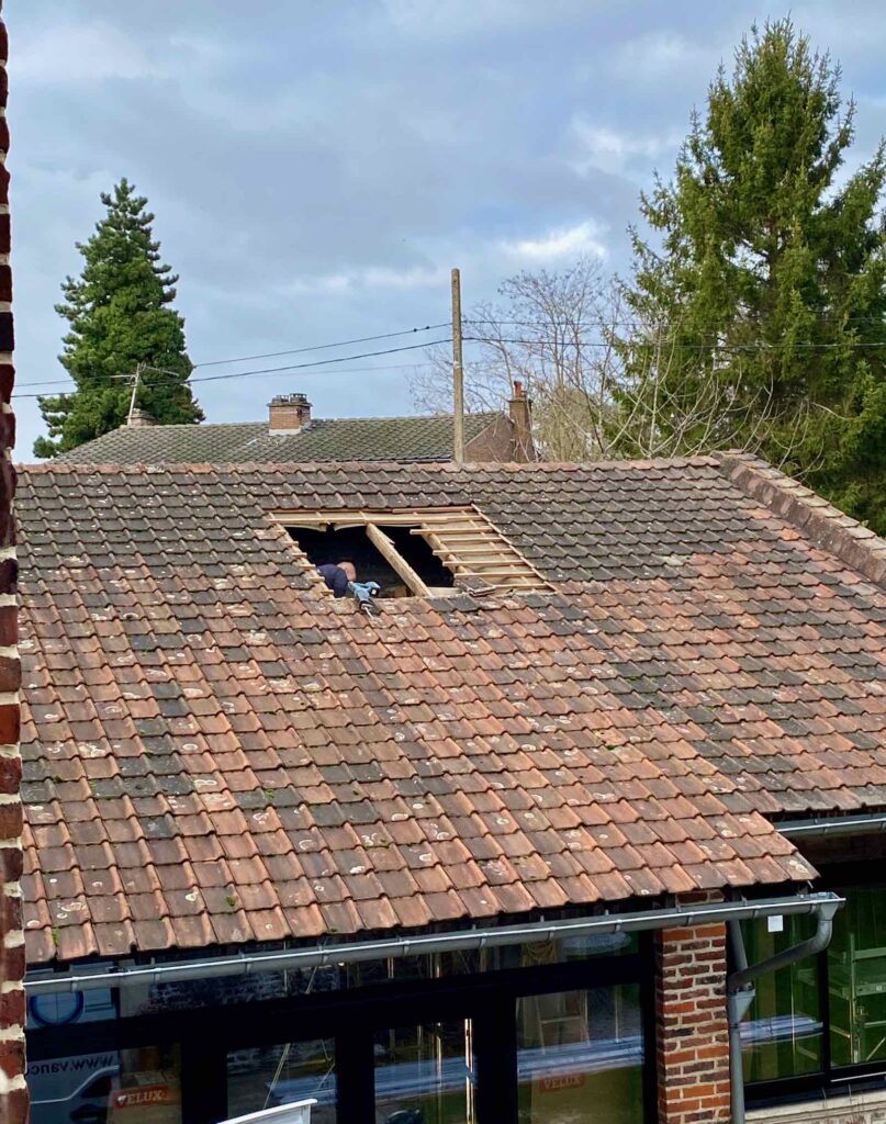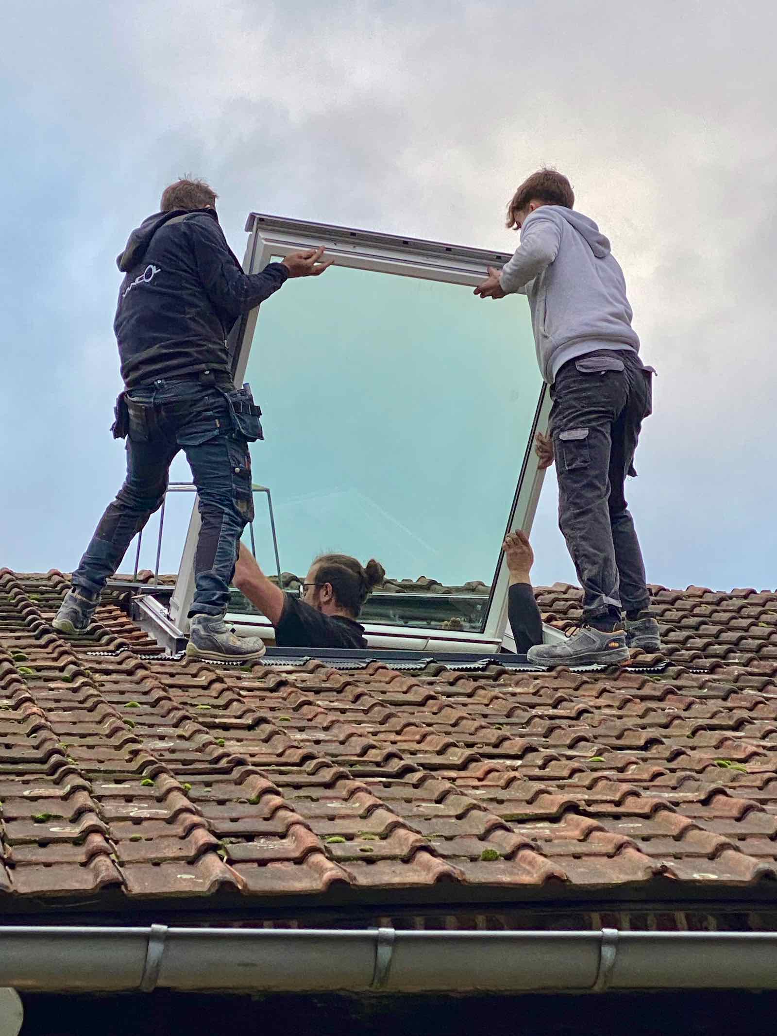 La météo a (encore) prévu de la pluie pour toute la semaine. Ce lundi est donc la seule fenêtre pour installer celle de toit, qui va nécessiter une journée entière de travail.