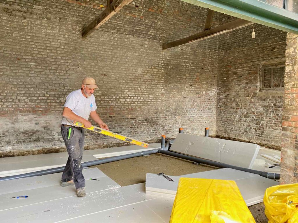 Il est alors temps de poser les plaques destinées à isoler le sol.