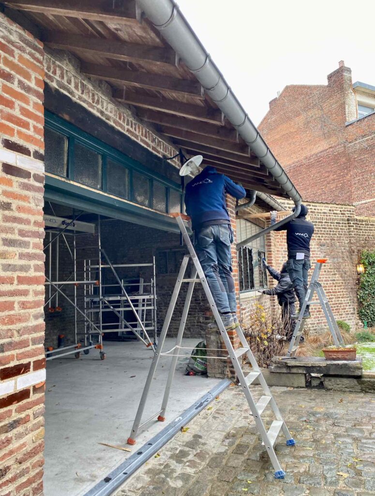 Dès le lendemain, c’est au tour des murs de s’habiller pour l’hiver, après la pose de rails métalliques.