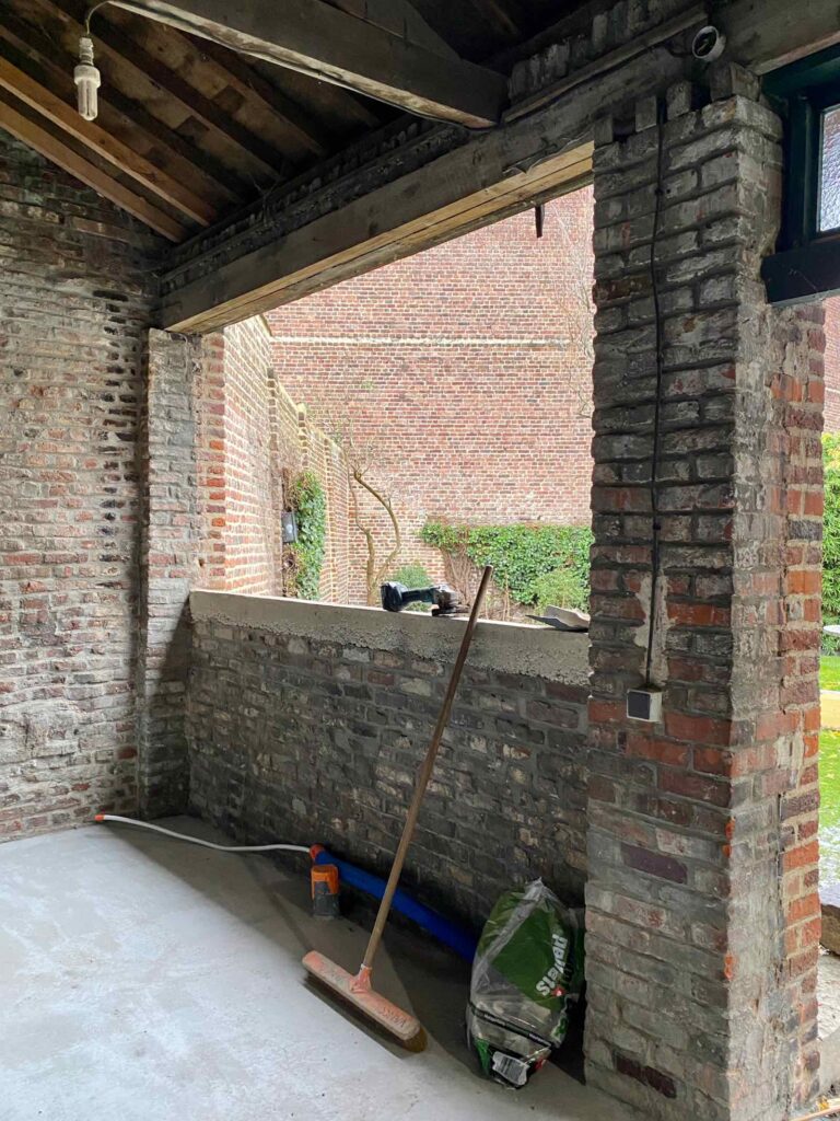 J’attends de pied ferme l’entreprise Vancol qui, dès lundi, va métamorphoser les lieux. Mais rien ne sera possible sans une nouvelle intervention des maçons, chargés de poser un seuil sur lequel reposera la future baie vitrée. Le seuil en question est en pierre bleue, magnifique matériau régional, et ça franchement j’adore !