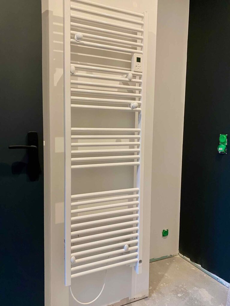 Avant la suite des opérations, l’entreprise Vancol vient passer une petite matinée, le temps d’installer les trois radiateurs et le sèche-serviette de la salle de bain.