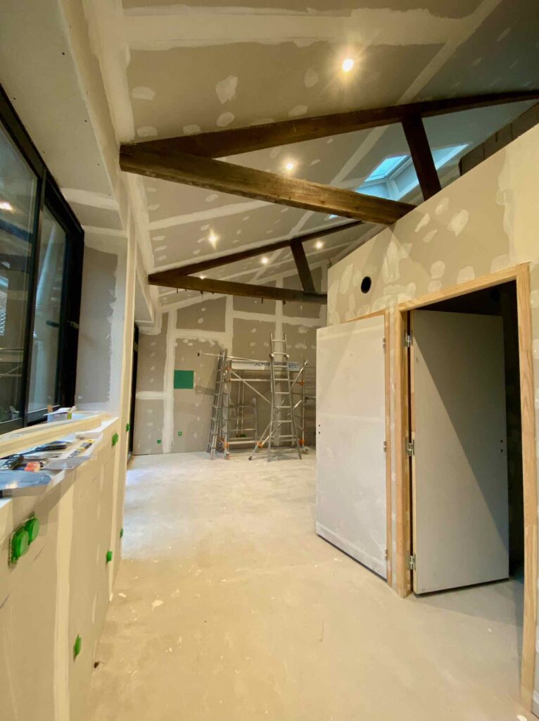 Commencés début octobre, les travaux d’aménagement de mon futur hébergement touristique avaient déjà bien avancé au moment de Noël. Mais si mon ancien atelier de maréchal ferrant commençait à ressembler à ce que j’avais imaginé, on était encore loin du cocon douillet que je souhaite proposer à mes hôtes. Depuis début janvier, les artisans sont donc de retour pour continuer à métamorphoser les lieux. Retour en images sur deux gros mois de travaux…