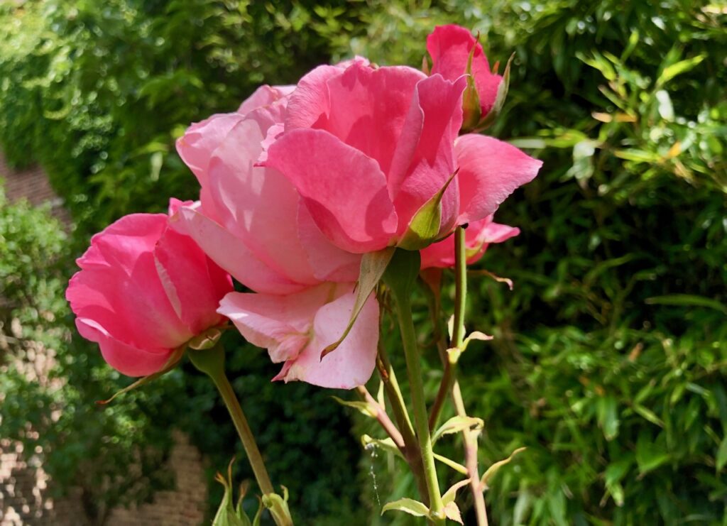 Quant aux roses roses, elles étaient déjà là il y a vingt ans et le rosier commence à être bien fatigué… Tout comme l’hortensia devenu une vraie misère. Et le lilas qui donne chaque année moins de fleurs.