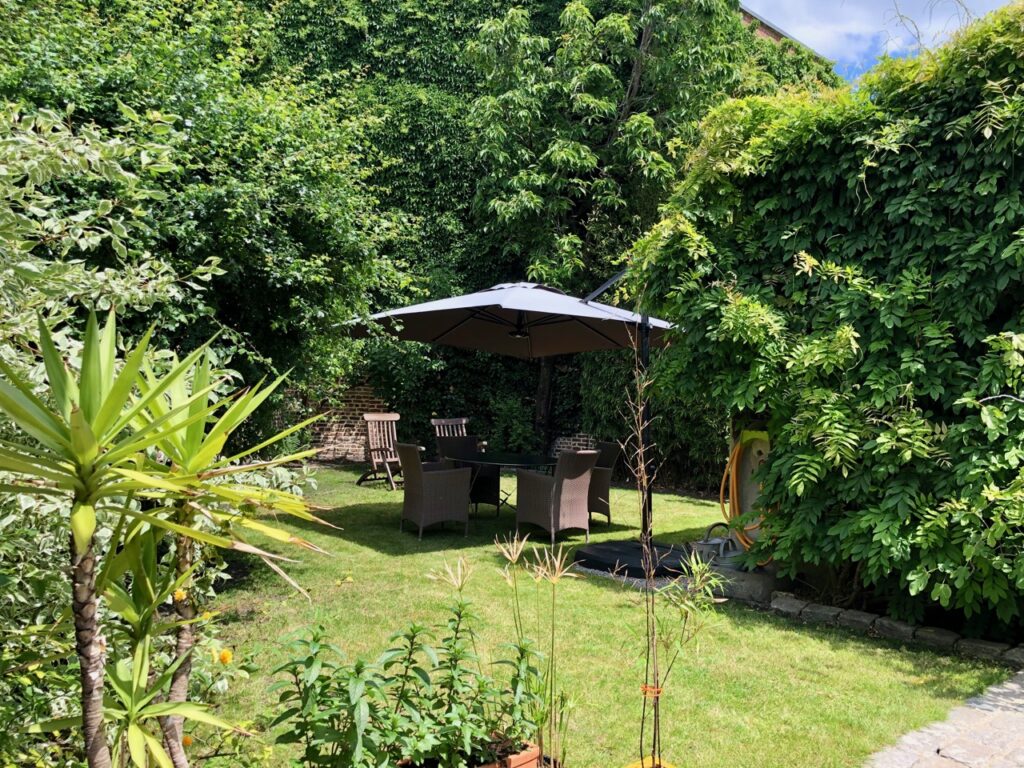C’est un vrai jardin secret ! Caché à la fois derrière un grand porche et derrière une cour pavée, on le soupçonne à peine en passant dans ma rue. Pourtant il est bien là, quelques mètres carrés (combien au juste ?), protégés par des murs des regards indiscrets.