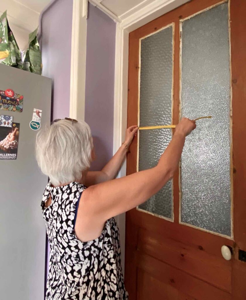J’ai choisi le deuxième, plus graphique et sobre, que Françoise a reproduit à échelle réelle. Mais avant cela, elle était bien sûr venue à la maison pour prendre les mesures exactes.