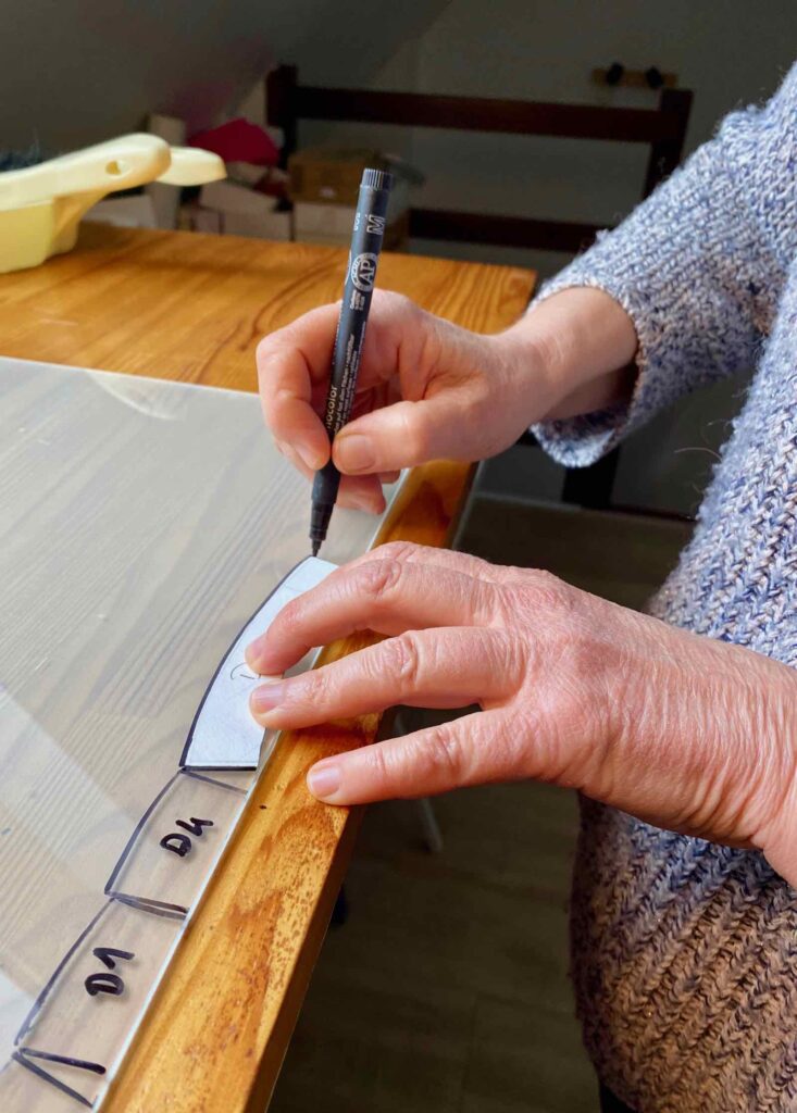 Étape suivante : poser chaque gabarit sur « sa » plaque de verre et la détourer avec un feutre indélébile.