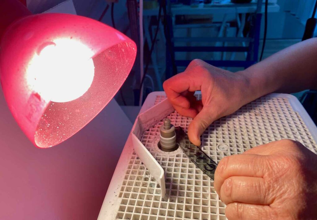 Avant cela, Françoise avait apposé la griffe Verronimo sur l’une des pièces basses du vitrail, pièce qu’il a fallu passer au four.
