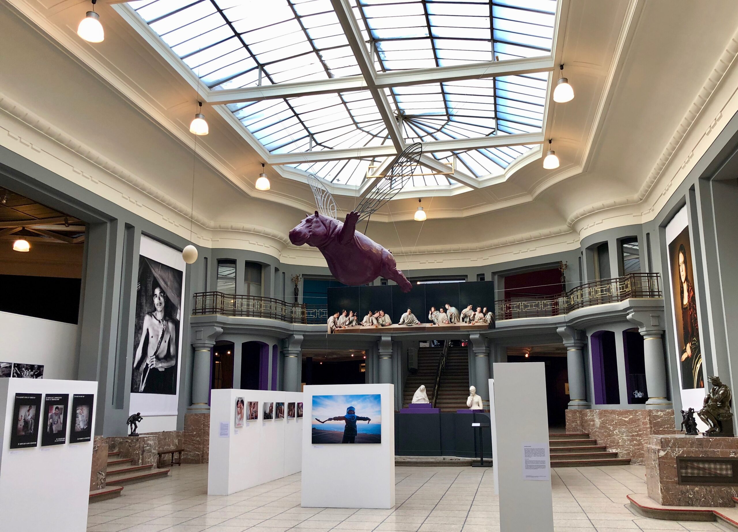 J’adore la verrière très Art Déco qui éclaire la nef centrale mais aussi le fantasque hippopotame volant, suspendu dans les airs.