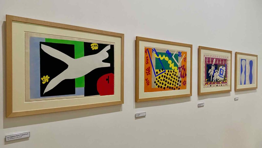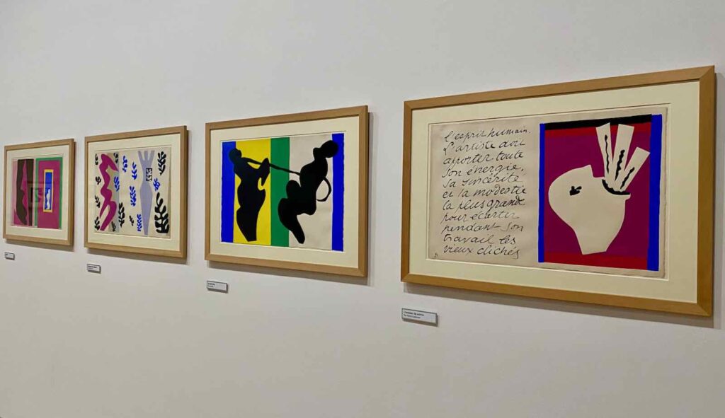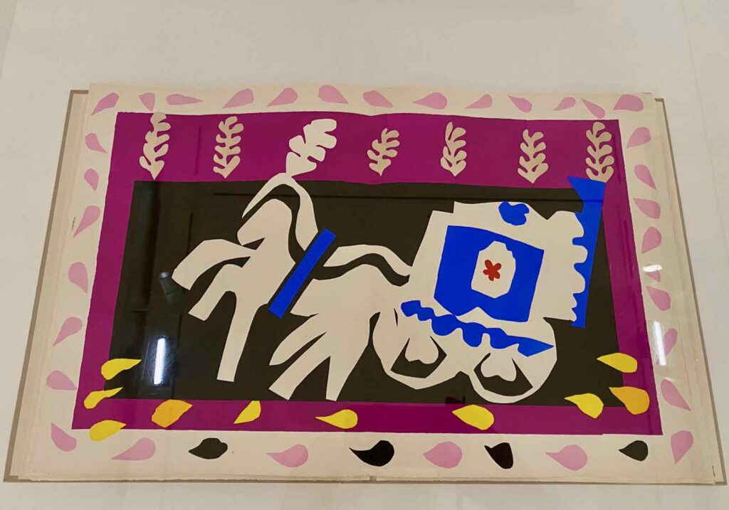 À voir notamment, Jazz, le livre illustré le plus connu de Matisse, édité par Tériade, et qui contient vingt compositions en papiers gouachés et découpés, accompagnées d’un texte calligraphié. Jazz qui s’inspire de différents univers, notamment le cirque, les voyages et les contes populaires.