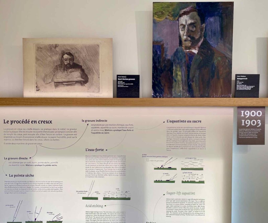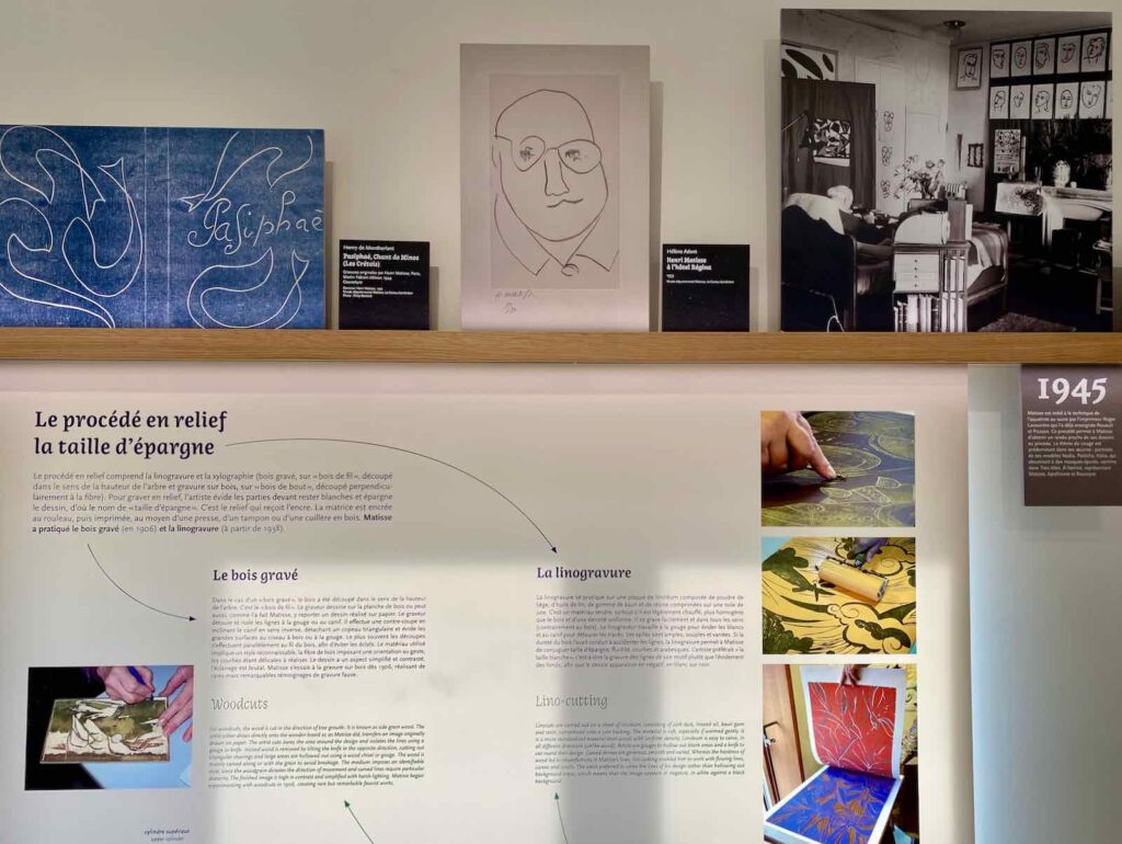 Considérant la gravure et l’estampe comme aussi importantes que la peinture, Matisse s’est également montré productif dans ces disciplines. Il a ainsi exploré de nombreuses techniques entre lithographie, pointe-sèche, eau forte, aquatinte, bois gravé, comme le rappelle bien le nouveau musée.
