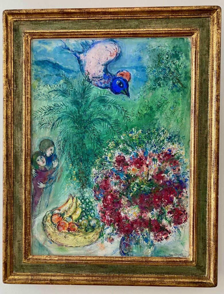 Je suis tombée en admiration devant Les Amoureux au bouquet de Chagall, une gouache peinte à Saint-Jean-Cap-Ferrat.