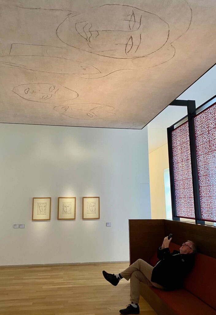 Autre nouveauté, la salle du plafond, où le spectateur est invité à s’installer sur un sofa au dossier légèrement incliné. Il aura ainsi tout le loisir d’observer l’ancien plafond de la chambre de Matisse, à Nice, sur lequel l’artiste a esquissé le portrait de ses trois petits-enfants. C’était le jour de ses 80 ans et le dessin, réalisé à l’aide d’un fusain accroché à une canne de 2 mètres de long, est un peu maladroit. Mais tellement touchant !