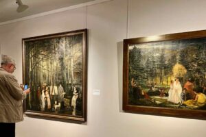 Saint-Idesbald-musee-Paul-Delvaux-homme-devant-deux-tableaux