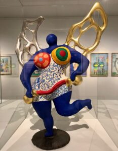 Enfin, dans le jardin du BAM, voici la Fontaine aux Nanas (fond bleu). Une autre sculpture monumentale dans l’espace public. Et une vraie fontaine en plus !