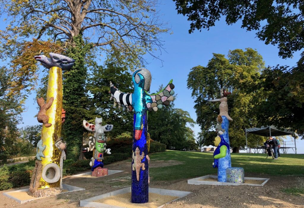 Normal donc que l’expo montoise, première grande rétrospective en Belgique, présente quelques projets monumentaux. Comme ces Totems érigés dans le parc du Beffroi, comme échappés du Queen Qualifia’s Magical Circle. Ce parc de sculptures, situé à Escondido en Californie, a été le dernier projet monumental de l’artiste avant sa mort, en 2002.
