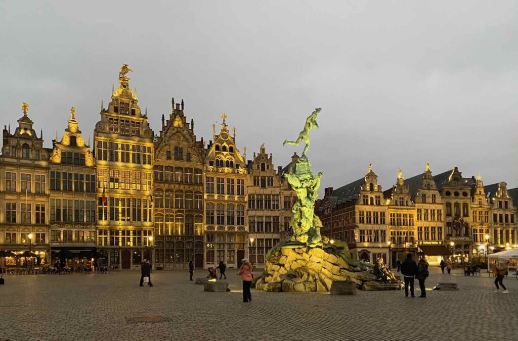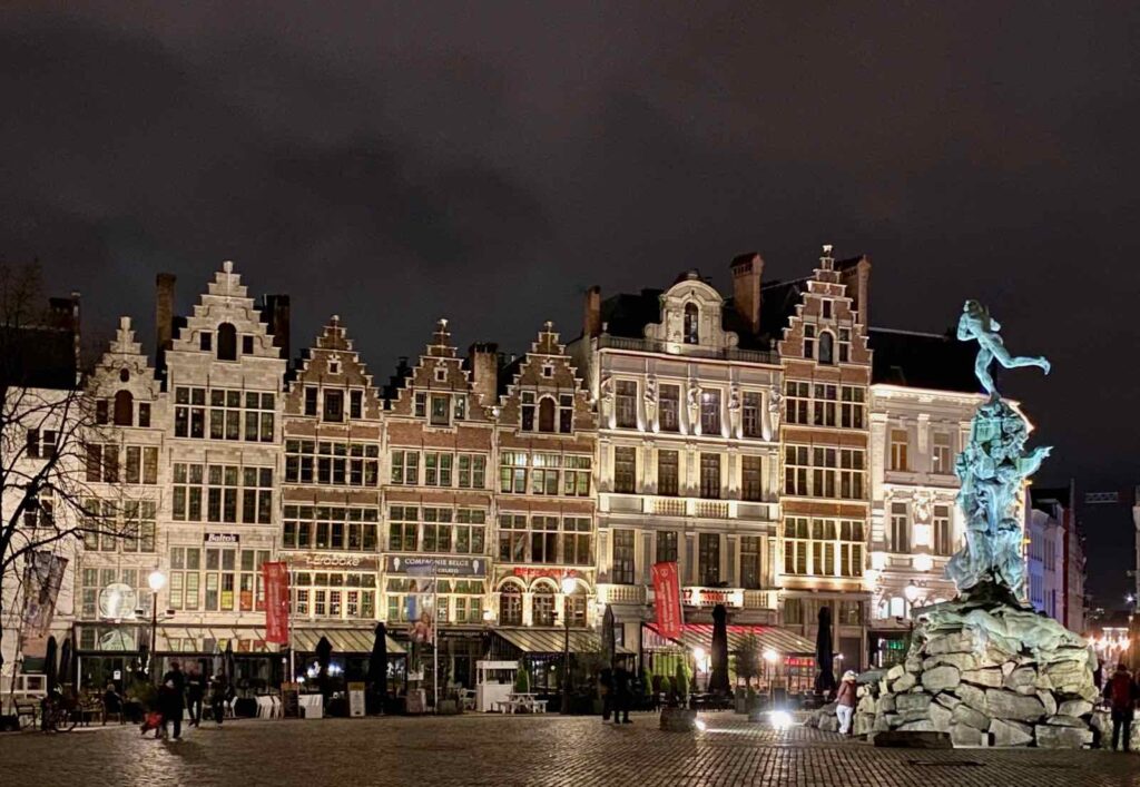 Cerise sur le gâteau, voici quelques photos de la Grand Place à l’heure du crépuscule, sans davantage de blabla. Juste pour la beauté inouïe de ce Grote Markt, qui à lui seul vaut de découvrir Anvers…
