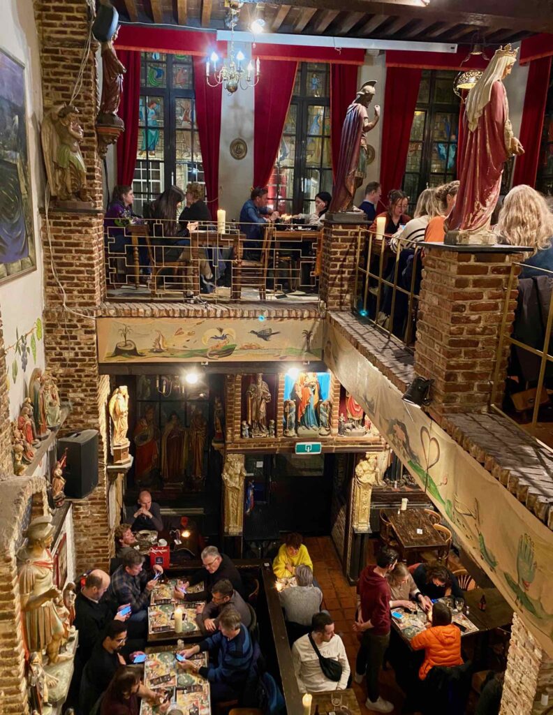 En revanche, pour boire un verre, c’est un must ! Pour le grand choix de bières locales, notamment trappistes. Mais surtout pour les dizaines et dizaines de statues et autres ornements religieux, trouvés Dieu je ne sais où. Elfde Gebod signifie Onzième Commandement. Comme « Venu visiter Anvers, tu boiras une bière ici », dans ce lieu vraiment dingue.