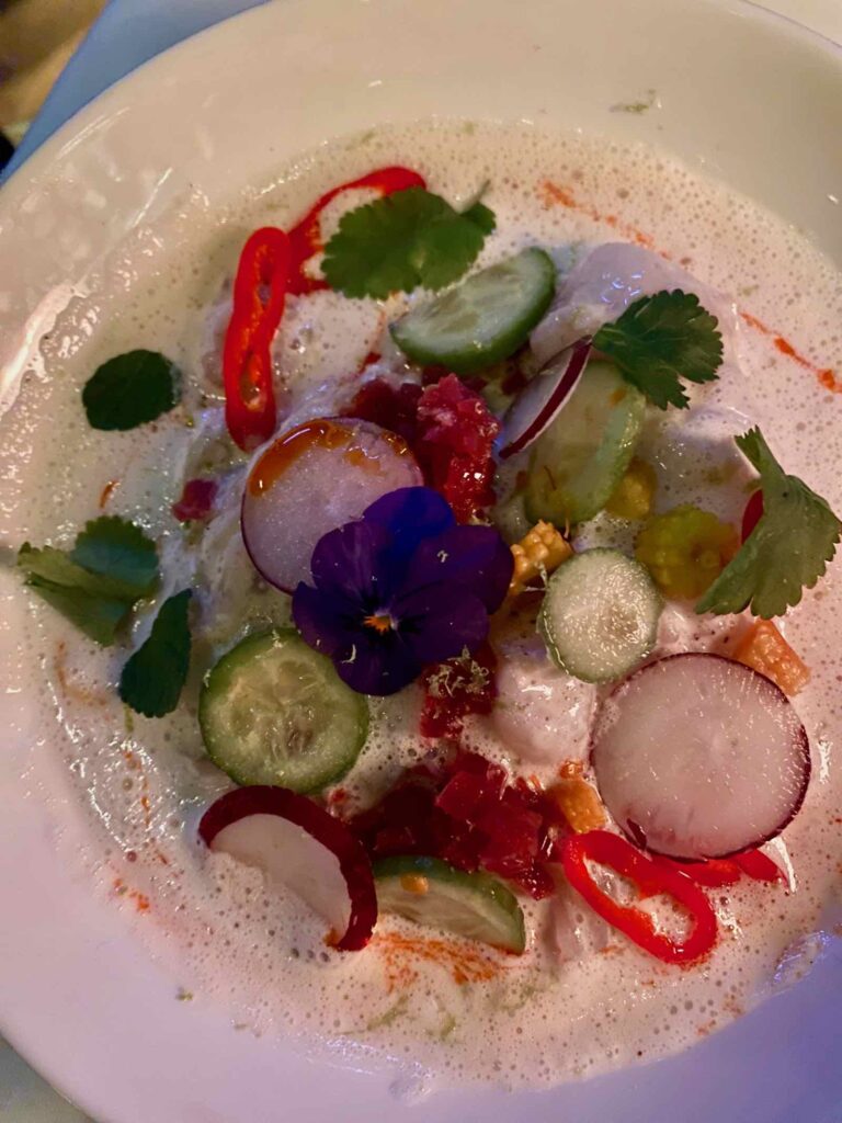 Mes (heureux) collègues ont, quant à eux, choisi le délicieux Ceviche, comme à Lima (28 €), avec radis, piment, menthe et oignon rouge.
