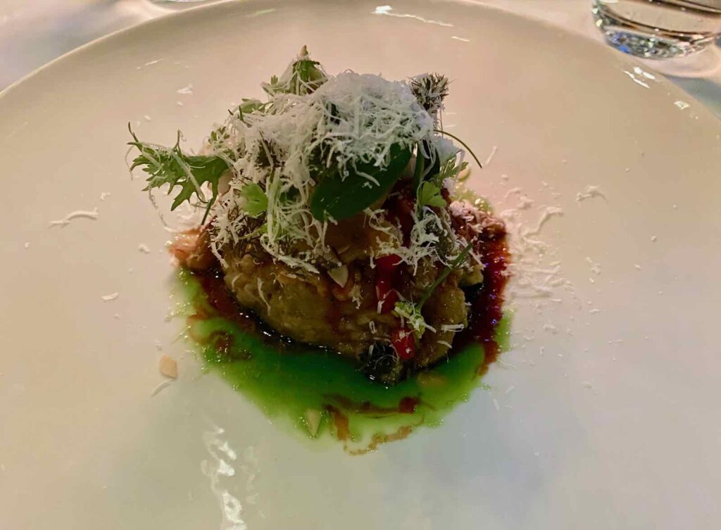 J’ai ainsi savouré une délicieuse Aubergine effilochée, à la mode de Beyrouth (23 €), relevée notamment de grenade et de sésame.