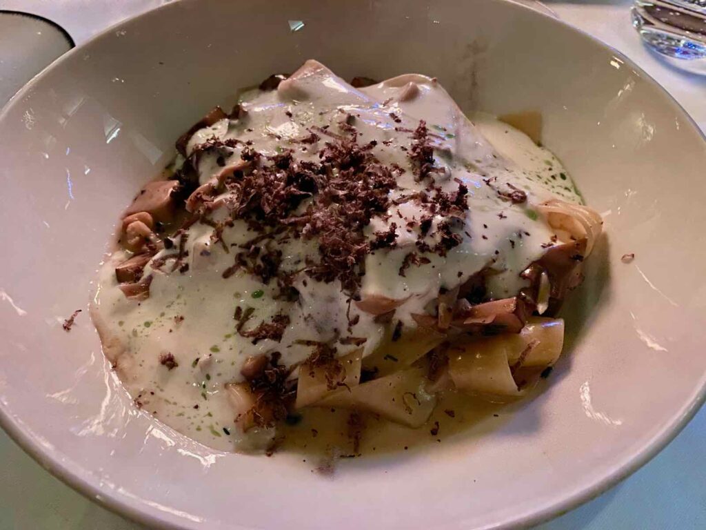 À l’heure du plat, j’ai filé du côté de Florence, avec des Pappardelle d’anthologie, agrémentés de truffe d’été (qui a motivé mon choix). Aussi divin qu’un Michel Ange exposé aux Offices…
