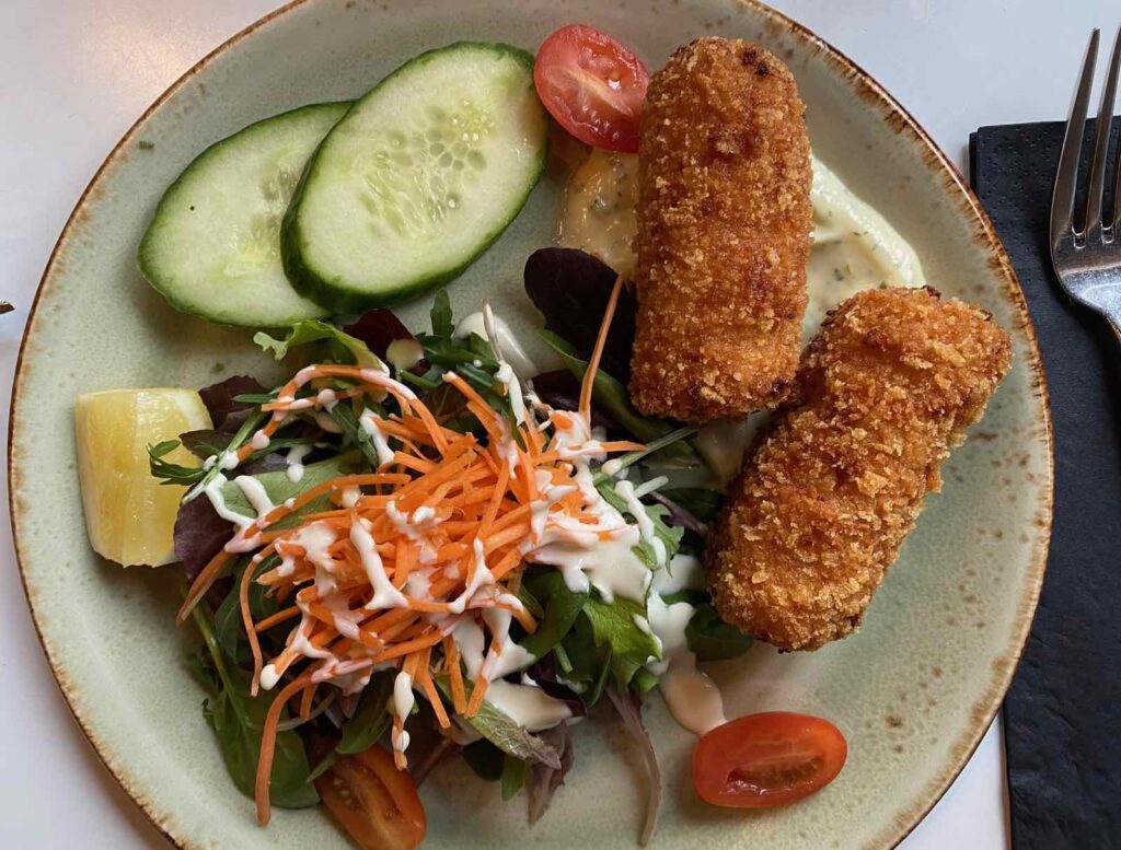Les croquettes de crevettes et leur garniture, un must pas très loin de la mer du Nord (18,50 €).