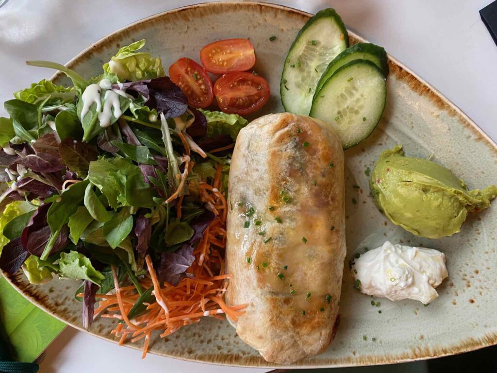 Ou le wrap au poulet mariné et sa verdure (18,50 €… tiens, on dirait que tout ou presque coûte le même prix 😊)