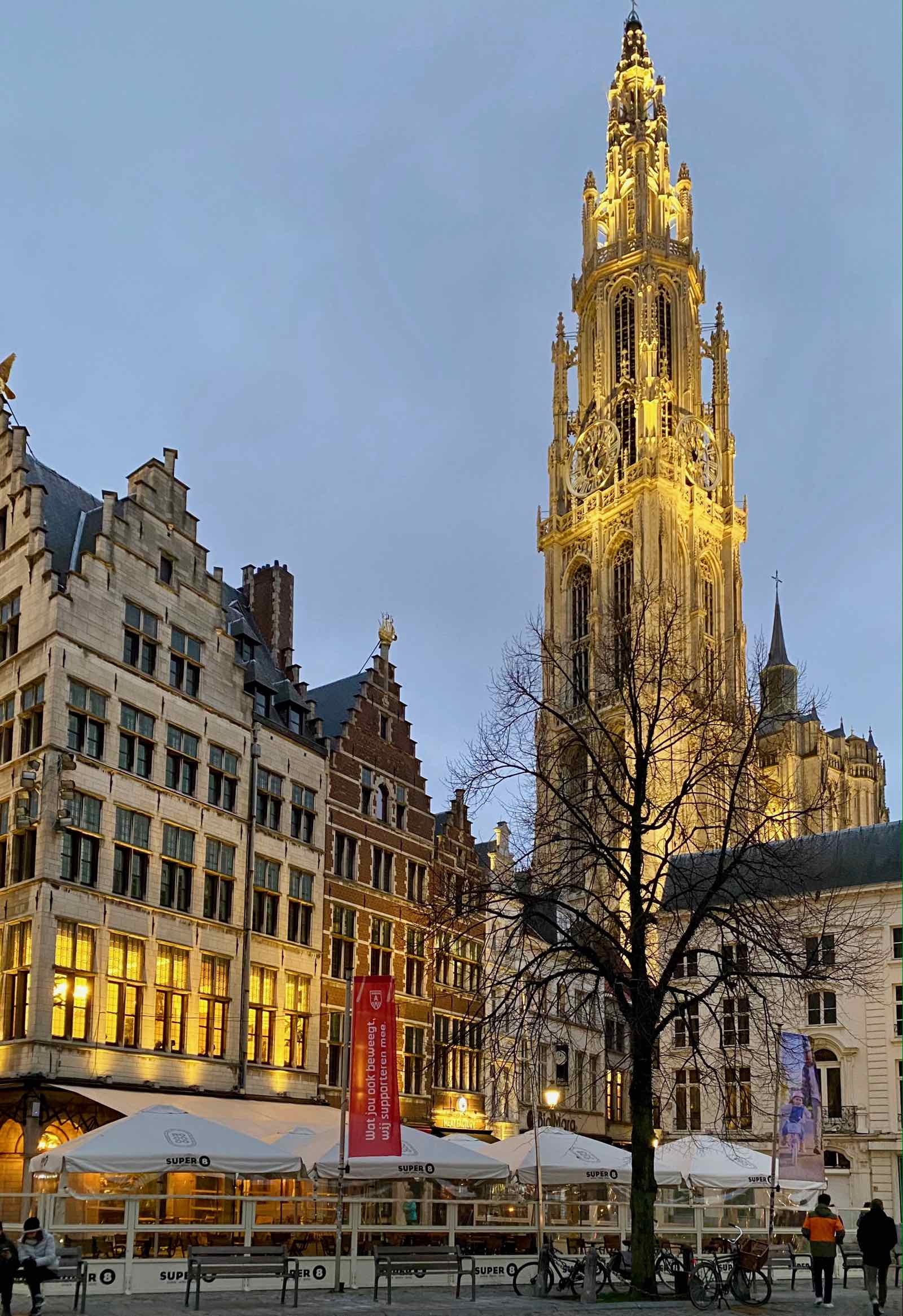 Anvers-Grote-Markt-et-cathedrale-Notre-Dame-illuminee