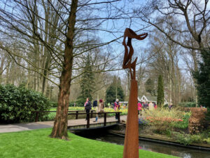Vue parc floral avec sculpture cntemporaine – Keukenhof Pays-Bas