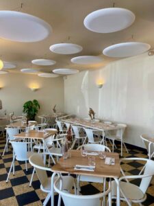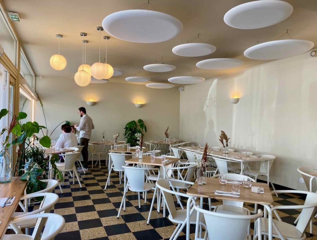 Si elle a conservé le sol en damiers du magasin de souvenirs qui occupait autrefois les lieux, Magali a entièrement refait les locaux, en jouant la carte de l’écoresponsabilité. Peinture sans solvant à l’huile végétale sur les murs, placo bio, ouate à la place de la laine de verre, cela ne se voit pas en poussant la porte de Paulette à Stella-Plage mais fait partie des choix vertueux qui lui tiennent à cœur.