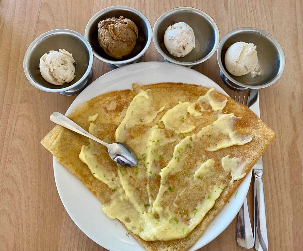En dessert, comment choisir ? Les crêpes de petit épeautre de Paulette à Stella-Plage sont plus tentantes les unes que les autres (la prochaine fois, je craque et je prends l’ultra gourmande). Tandis que les glaces 100% bio de Terre Adelice sont une vraie tuerie !