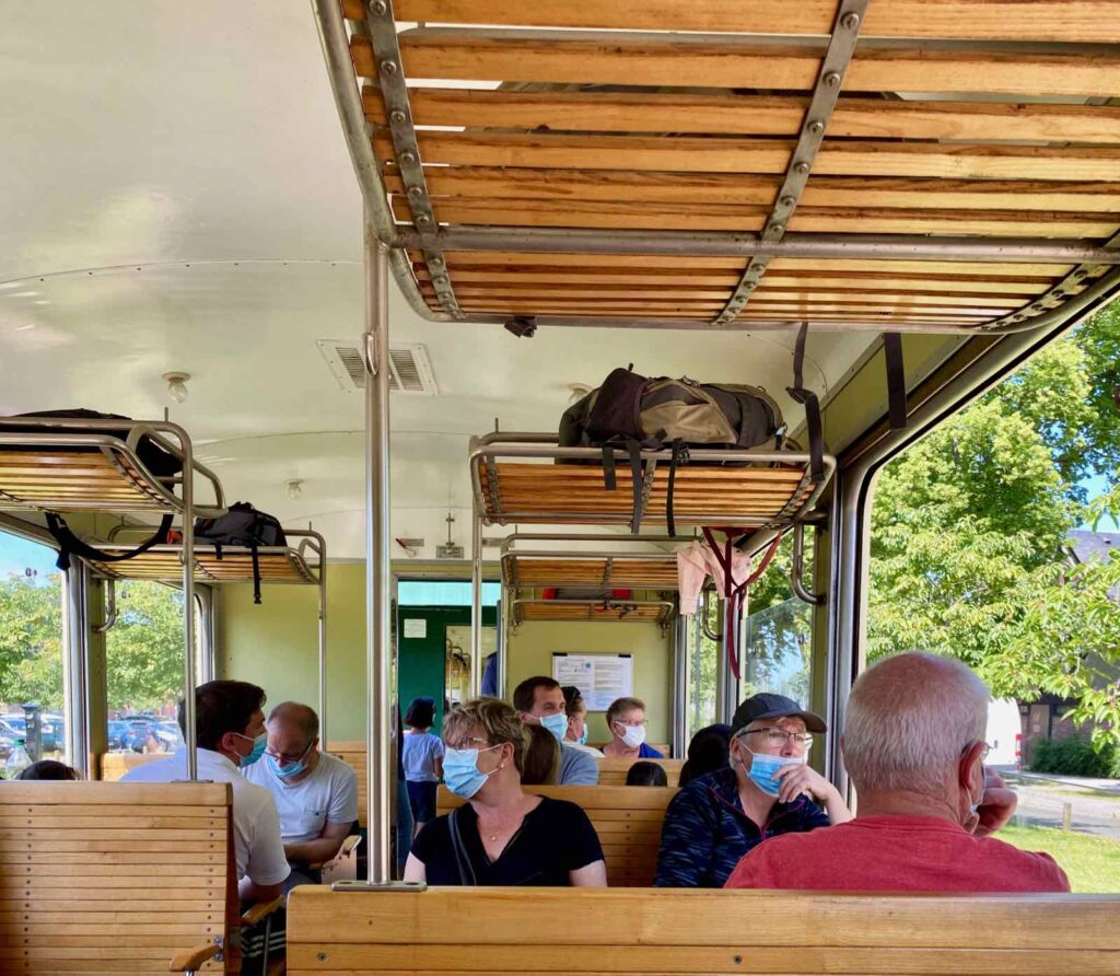 Chacun se presse, grimpe dans un wagon et s’installe, en attendant le coup de sifflet du chef de gare. Malgré mon masque, je sens ce parfum de vieux wagon, difficile à définir mais reconnaissable entre mille.