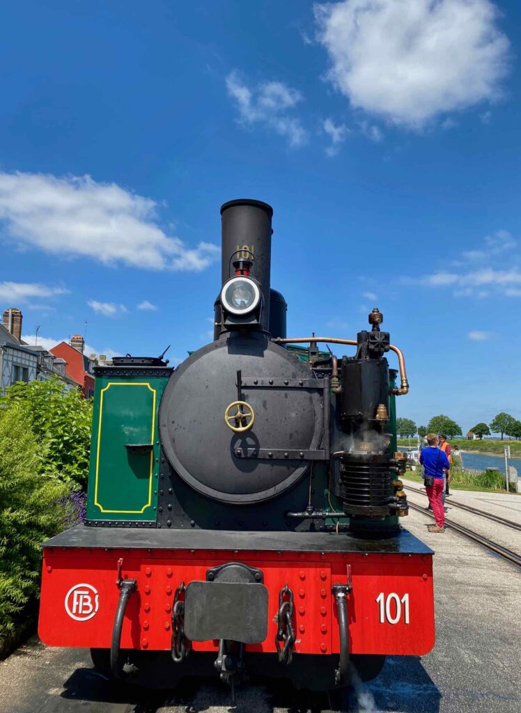 À l’entrée de la ville, je me suis d’abord arrêtée à la petite gare de Saint-Valery, point de départ des trains vers Cayeux-sur-Mer. En gare stationnait la célèbre locomotive à vapeur 101, une 030 T Pinguely, construite en 1905 à Lyon. Une machine classée Monument historique, comme la plupart des locomotives, des voitures voyageurs et des wagons de la collection du Chemin de fer de la baie de Somme.