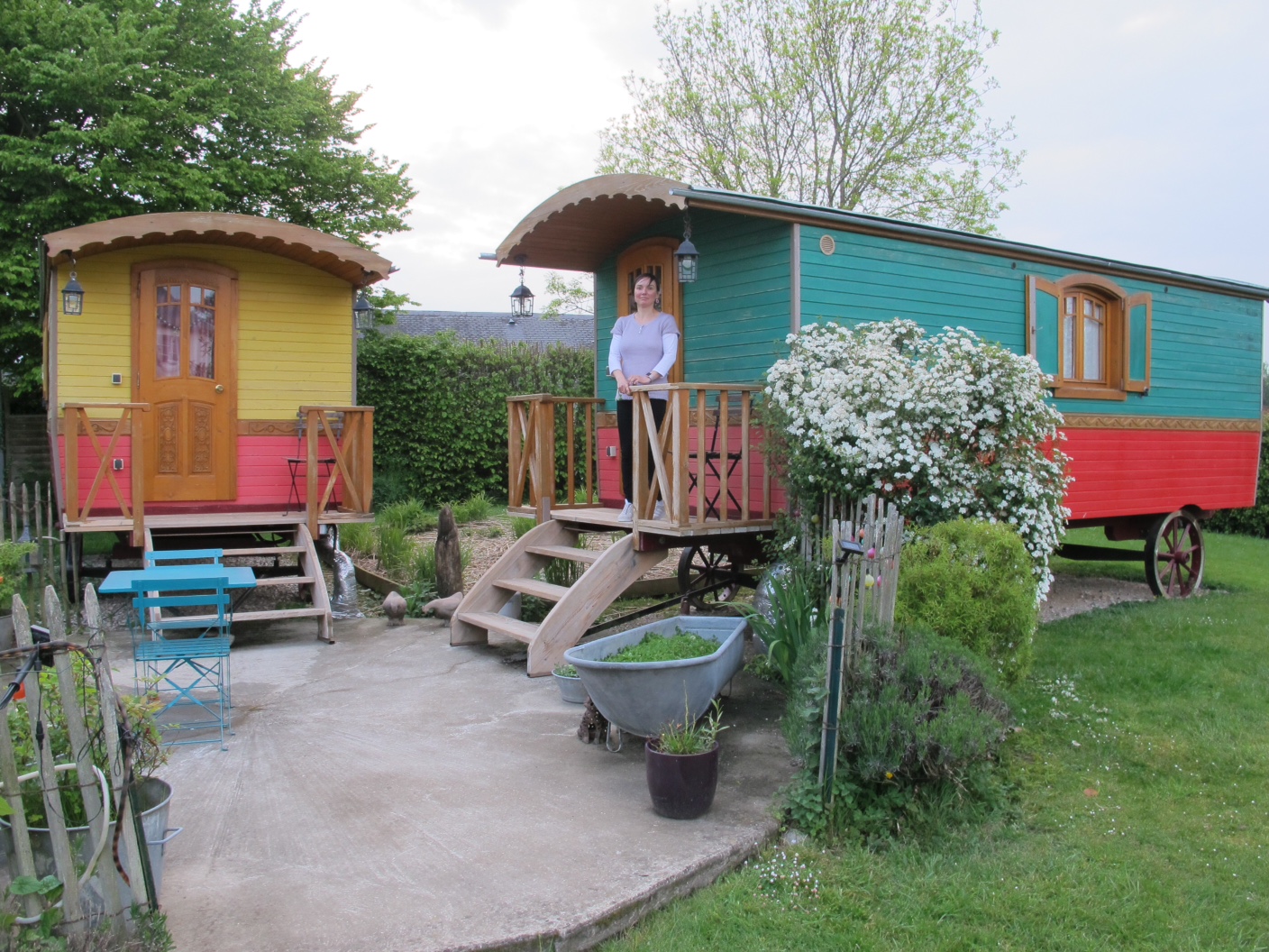 au-presbytere-saigneville-roulottes-jaune-et-verte-dans-jardin