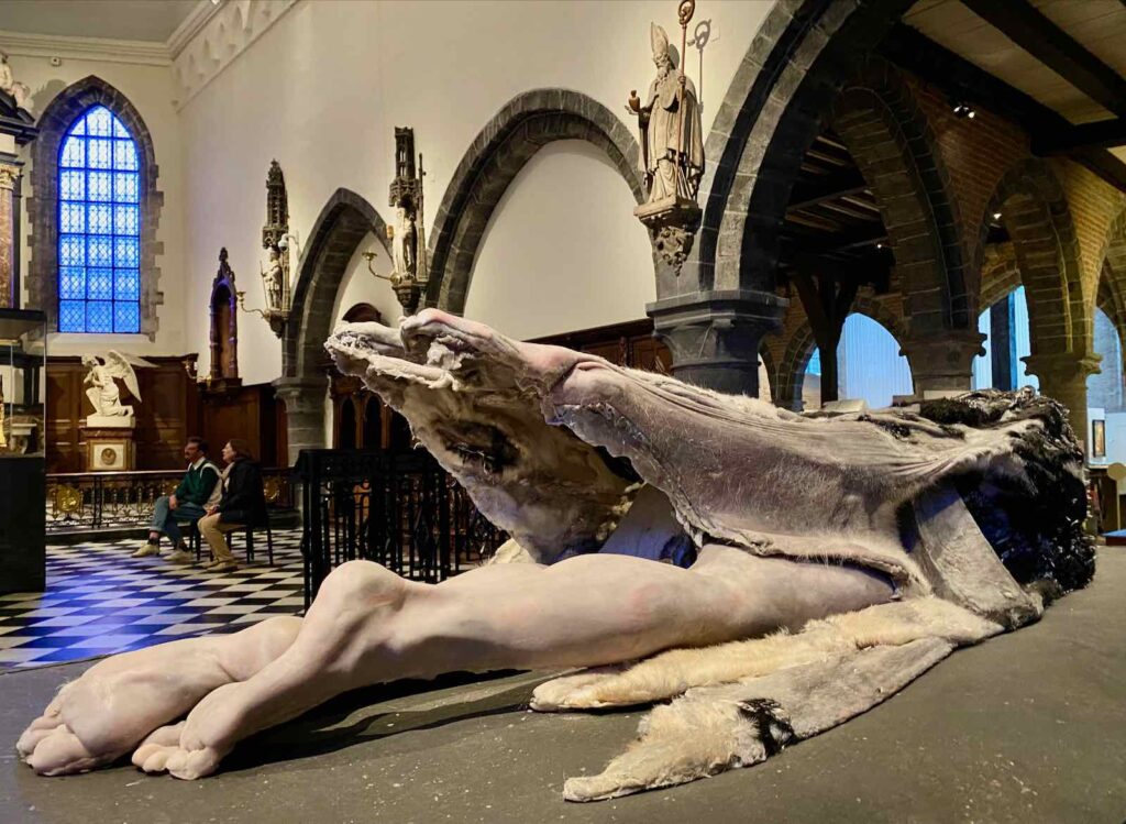 La Châsse de sainte Ursule dialogue avec le « Liggende-Arcangelo II » de Berlinde De Bruyckere, créé en 2023 pour le musée.