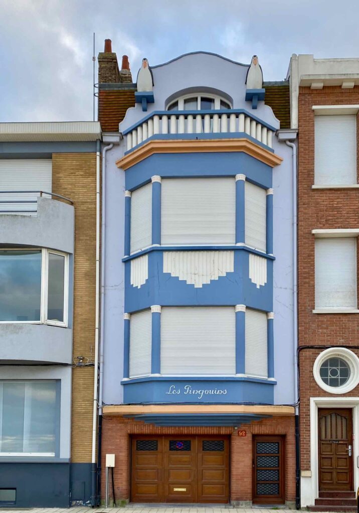 Côté villas, ma préférée est Les Pingouins, surmontée de deux oiseaux rigolos et rondouillards, qui surveillent l’horizon. Située au 92 de la digue de mer, elle affiche un indéniable style Art Déco, avec ses formes géométriques.