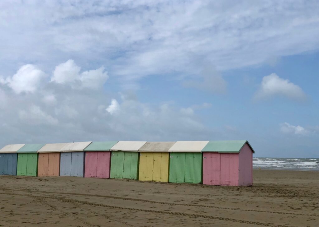 À Berck, ce sont elles que je préfère. Ces cabines lavande, rose ou amande qui, de loin, ressemblent à d’appétissantes guimauves. Elles jouent les brise-lames sur la plage immense, qui déroule ses 12 km de sable fin.