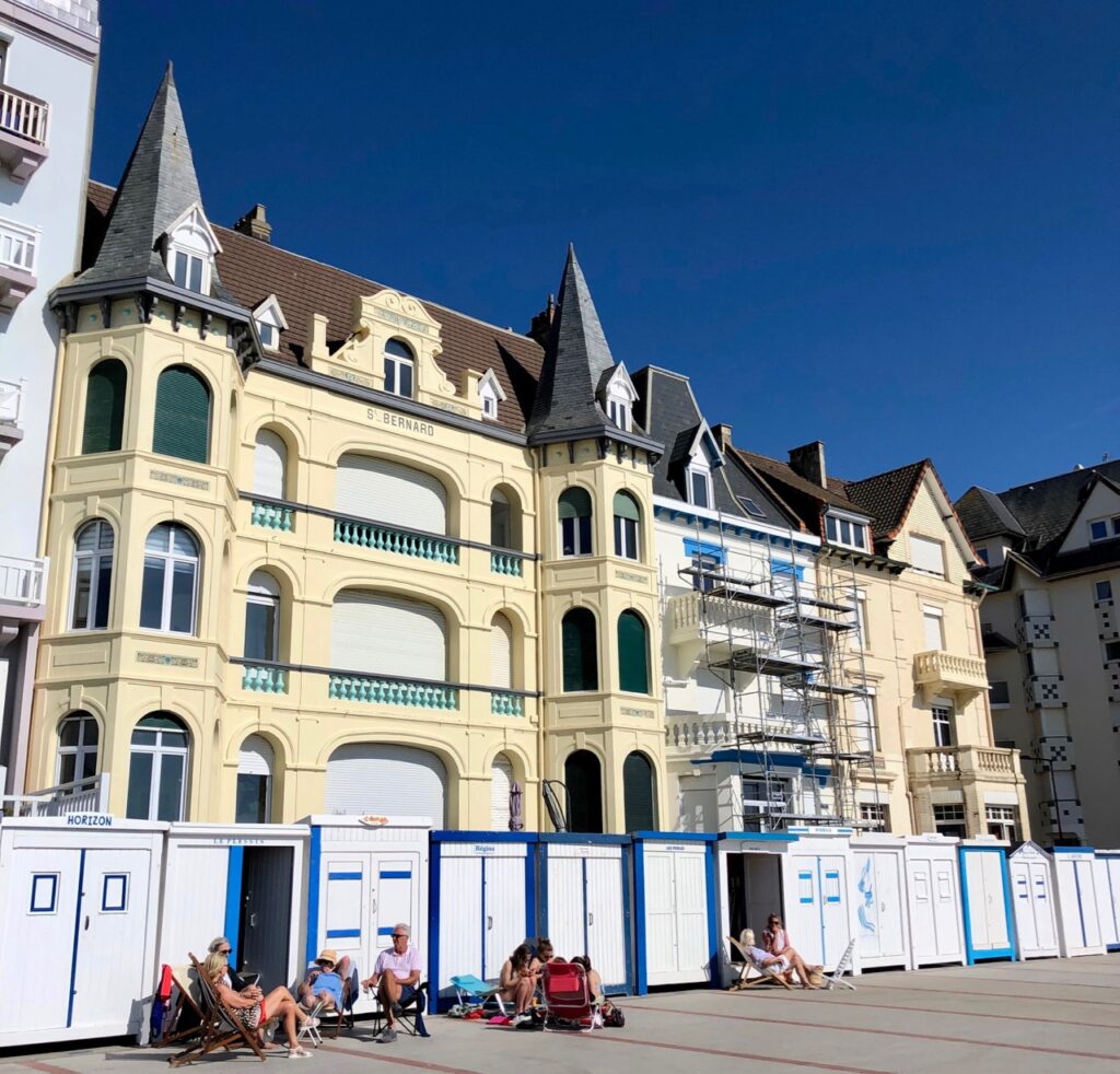 De toutes les stations de la Côte d’Opale, je crois bien que c’est ma préférée. Pas pour sa plage, souvent engloutie par la mer, mais pour sa superbe digue-promenade. On y trouve d’exubérantes villas anglo-normandes, vieilles dames un brin nostalgiques, mais aussi une longue guirlande de cabines de plage. Toutes blanches et bleues mais chacune un peu différente.