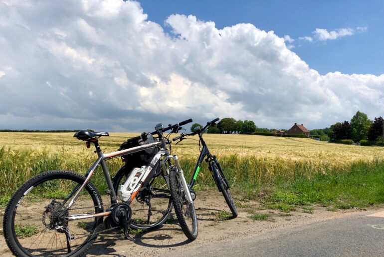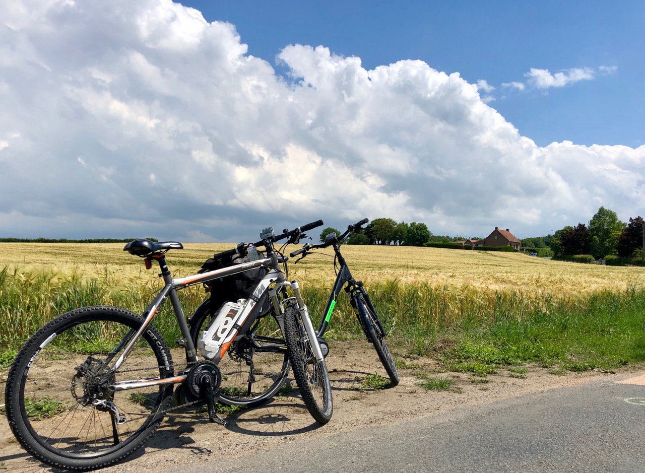 Quelques instants pour contempler l’exceptionnel point de vue et on remonte sur nos fiers destriers à assistance électrique pour une dizaine de kilomètres, jusqu’à Boeschèpe, via le Mont Noir.