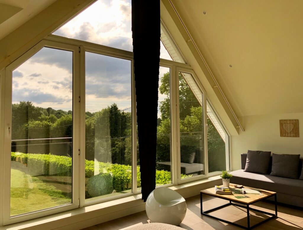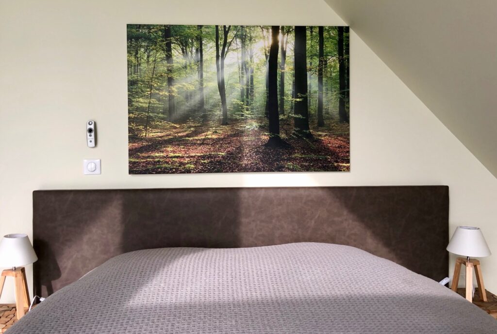Dont l’une à grand spectacle, la chambre au Bois Dormant, avec une vue XXL sur la campagne et même sur l’abbaye du Mont des Cats, dans le lointain.